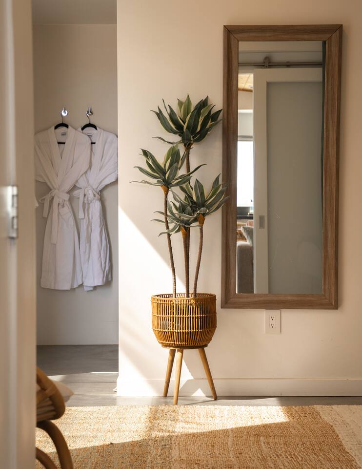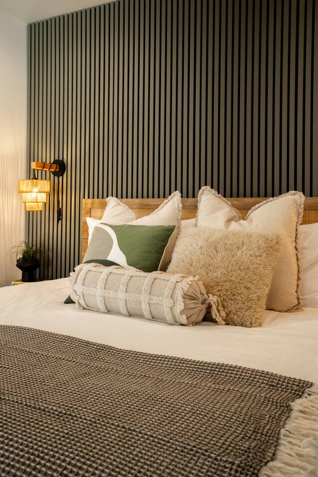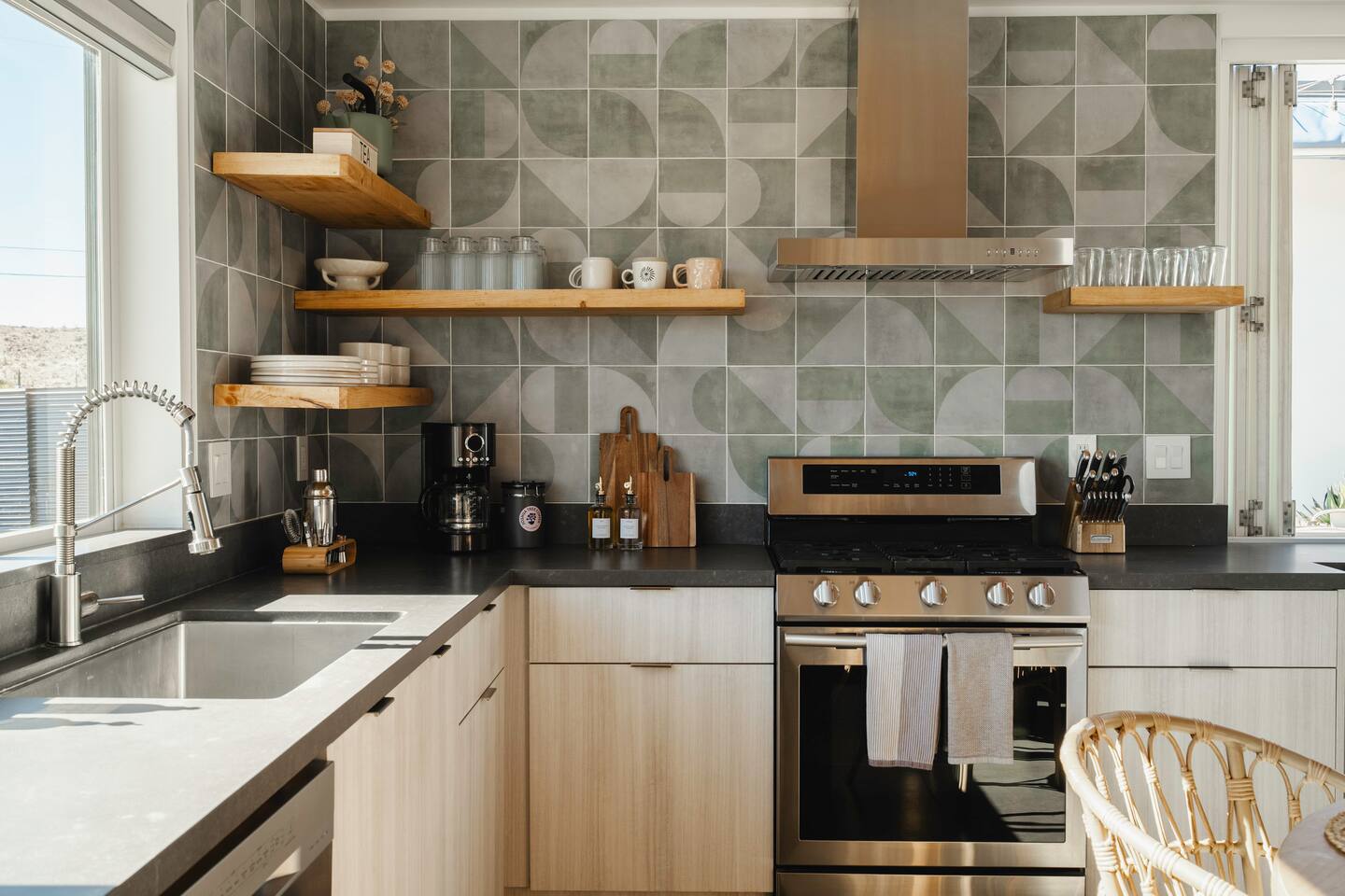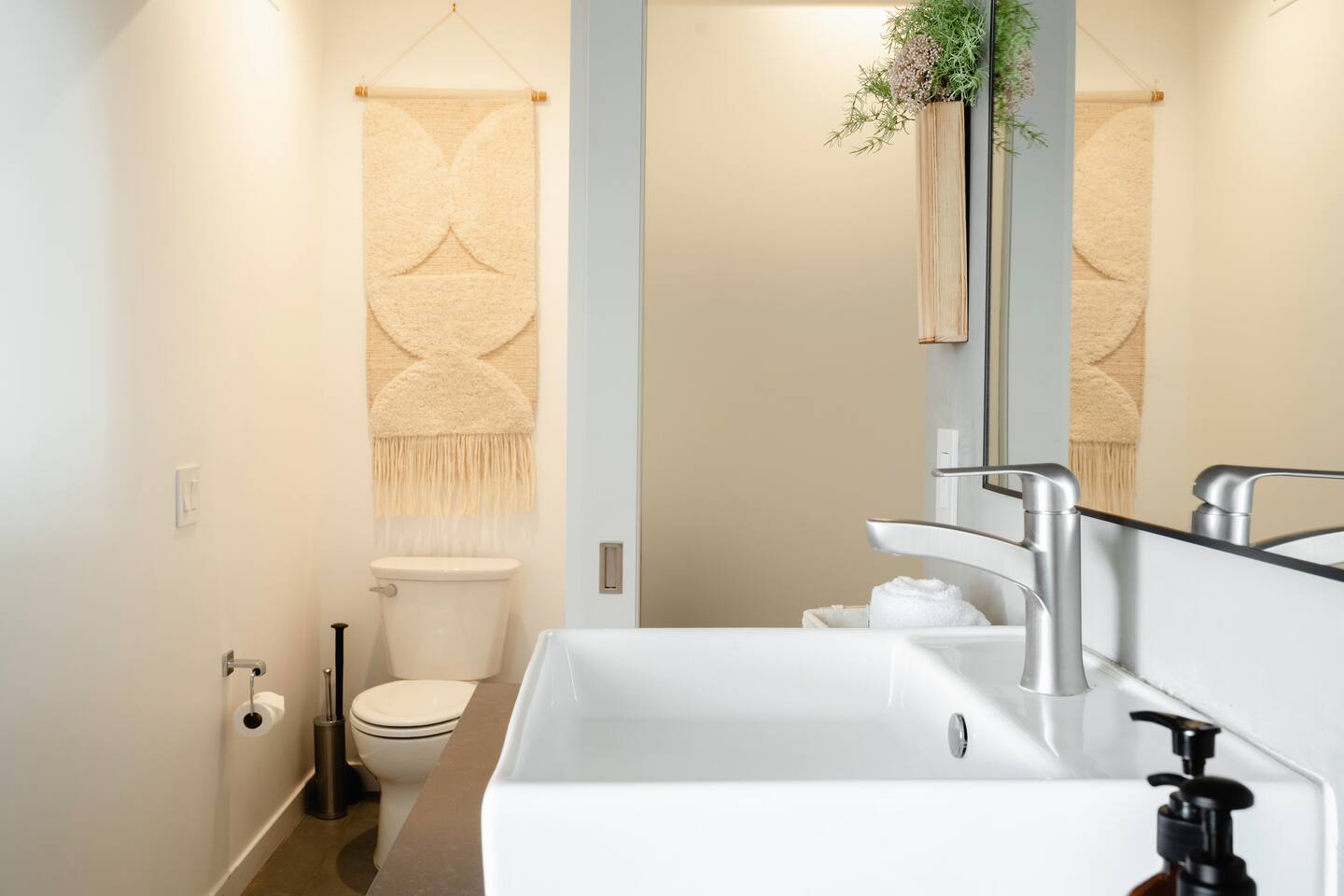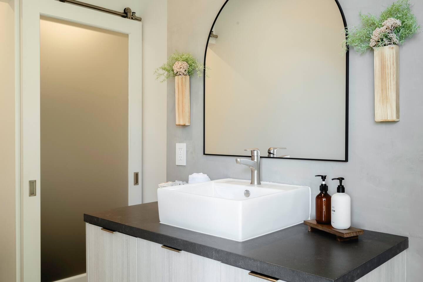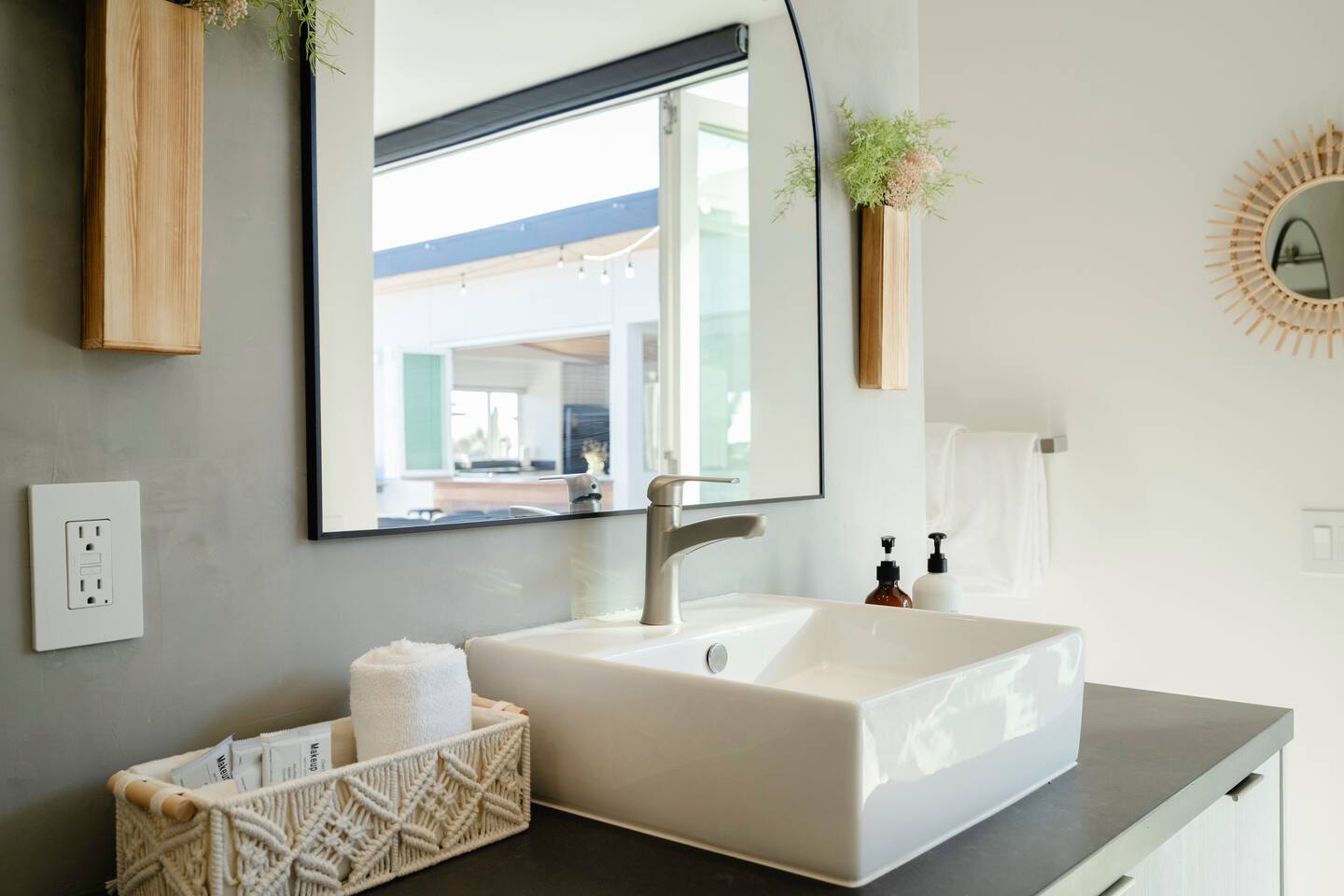 The Ventana Cove Pickleball Retreat by The Ventana Collection has been completely transformed and is back on the market March 2025. The Heated Saltwater Pool with custom waterfall into the sunken fire pit is a feature you won't find anywhere else. Relax on the pool loungers, bean bag chairs or included inflatable toys. The pooI can be heated all year round. Please contact for pool heating fees (varies by temp and season). The Pickleball Court and pro style Basketball Hoop offer a mountain view backdrop and fully fenced in play area so you can spend more time dinking and dunking than fetching. The living space features an open plan design with a plush low line sofa and a bright wingback chair that sit opposite the wall mounted 55" 4K TV with access to Netflix, Apple TV+ and Amazon Prime Video to keep everyone entertained. For additional guests, the couch has a full size sofa bed with 4" memory foam mattress. Slide open the bifold window to create an indoor-outdoor bar where you can serve up breakfast smoothies using the ninja blender or brew up a pot of coffee with your choice of a coffee maker or the French press using local aromatic Joshua Tree Coffee Company and tea. Create your next culinary masterpiece within the high-end gourmet kitchen that comes fully equipped with everything you could need and offers stunning views of the mountains while you cook. There is an oversize French door fridge with a filtered water and ice dispenser, a free-standing oven and stovetop, a microwave and a dishwasher to handle all the cleaning up. Dine inside at the modern dining table set for four, sit at the bar or eat alfresco style out on the patio with a rustic dining table under the retractable canopy to keep you out of the sun. There are three spacious bedrooms within the cove that are all separate from each other and feature huge “La Cantina” door walls that open out into the patio creating a seamless flow from one room to the other. Each of the bedrooms have their own private ensuite bathroom with luxurious rain fall showers and vanities stocked with all the essentials. The two master suites are filled with large memory foam king beds topped with hotel quality linen and bedding while the 3rd bedroom doubles as a studio where guests can roll out the ping pong table or open up the massive glass garage door to create the perfect space for a workout or to practice yoga. Or relive your youth on the Simpsons and Street Fighter arcade games. Then at night, drop down the comfortable memory foam queen size murphy bed for a restful night’s sleep. There are two desks. One is a fully enclosed office space for when you need complete isolation, the other is in the second bedroom. Very private and separated from the main living area. Wander over to the elevated stargazing deck and take an outdoor shower under the stars. Lounge in the stargazing net, then take a nap or read a book on of the relaxing hammocks under the shade of the Joshua trees. When night falls, light up the fire pit at the push of a button and enjoy the company of friends before retiring to the 6-person hot tub where you can Airplay your favorite songs through the multi-zone Sonos audio system. Watch a movie or put on the game with a huge new 85" TV above the hot tub or just lay back with a drink in hand and gaze up at the crystal clear night sky glittered with millions of stars. Electric Vehicle? There's a L2 40A charger in the carport for your convenience. We're pet friendly! The property is fenced in with special attention taken to remove all the *spikey things* that can get into paws.
