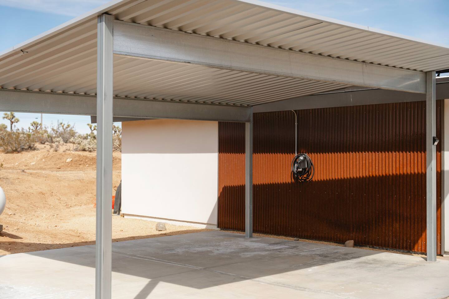 The best way to get around the Yucca Valley is by car with a 2-car covered car port that keeps your vehicle cool in the heat as well as additional parking in the large circle driveway. 15 Minutes to Joshua Tree National Park, 15 minutes to Pappy and Harriet's, and 10 Minutes to many shops and restaurants in downtown Yucca Valley. There are 0.5 miles of dirt roads to travel to get to the property. No 4WD is required. Any car can pass.